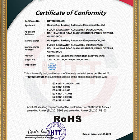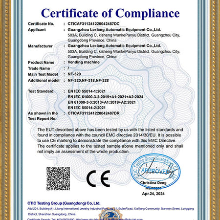 Our vending machine products have obtained multiple international certifications, ensuring compliance with global quality standards.